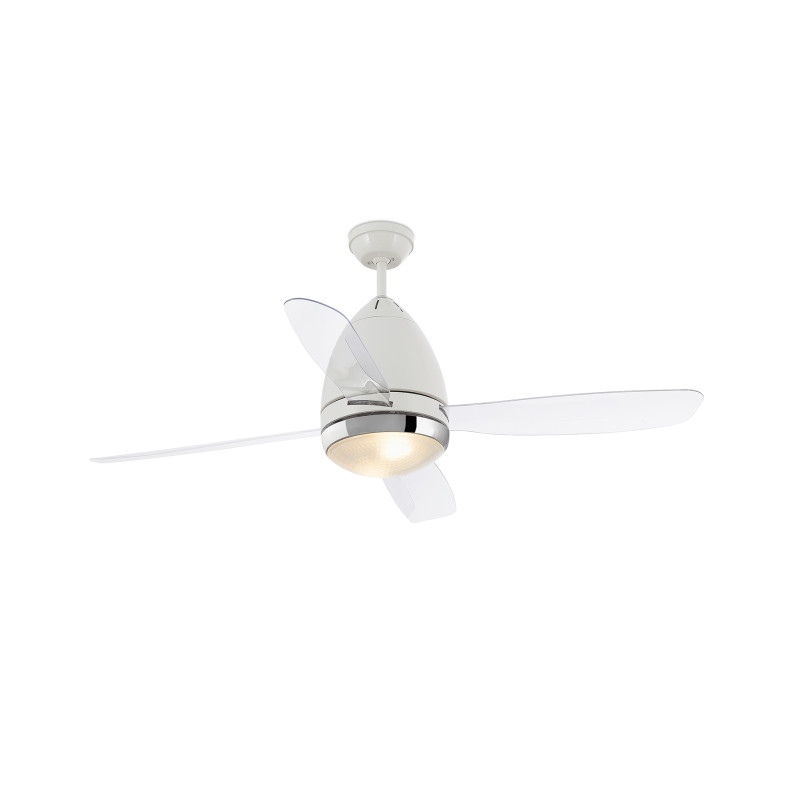Lubų ventiliatorius su šviestuvu. Motoras pagamintas iš metalo, o geležtės iš patvaraus plastiko.