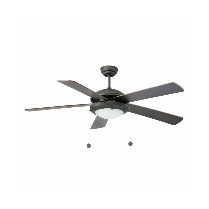 Lubų ventiliatorius su šviestuvu, tinkamas kambariams nuo 17.6m2. Motoras pagamintas iš plieno. Rankinis valdymas, turi tris greičius, apsisukimai per minutę 80/130/180, elektros sąnaudos 25/36/56W. Turi žiemos vasaros funkciją.