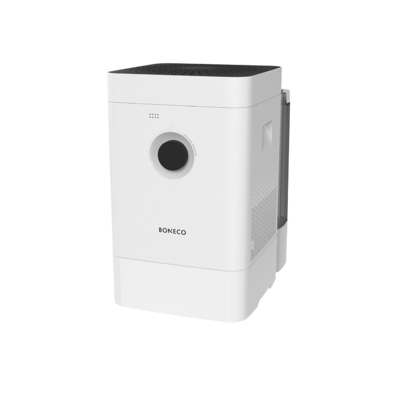 The unit can be easily operated using the control knob. The BONECO app is available for additional functions and modes: Simply set the desired humidity in which you feel best, and the H400 will take care of the rest. In addition, you can choose between different modes in the app (Hybrid, Purifier, Humidifier) to improve your air quality. The SLEEP profile supports restful sleep at night, and the BABY profile creates comfortable conditions while your child is dreaming.