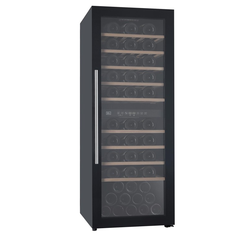 Laisvai pastatomas dviejų atskirai reguliuojamų temperatūrinių zonų vyno šaldytuvas - rūsys, talpinantis 77 Bordo vyno butelius. UV spindulių filtras ant durų stiklo, kompresoriaus vibracijos slopinimo sistema, medinės lentynėlės.