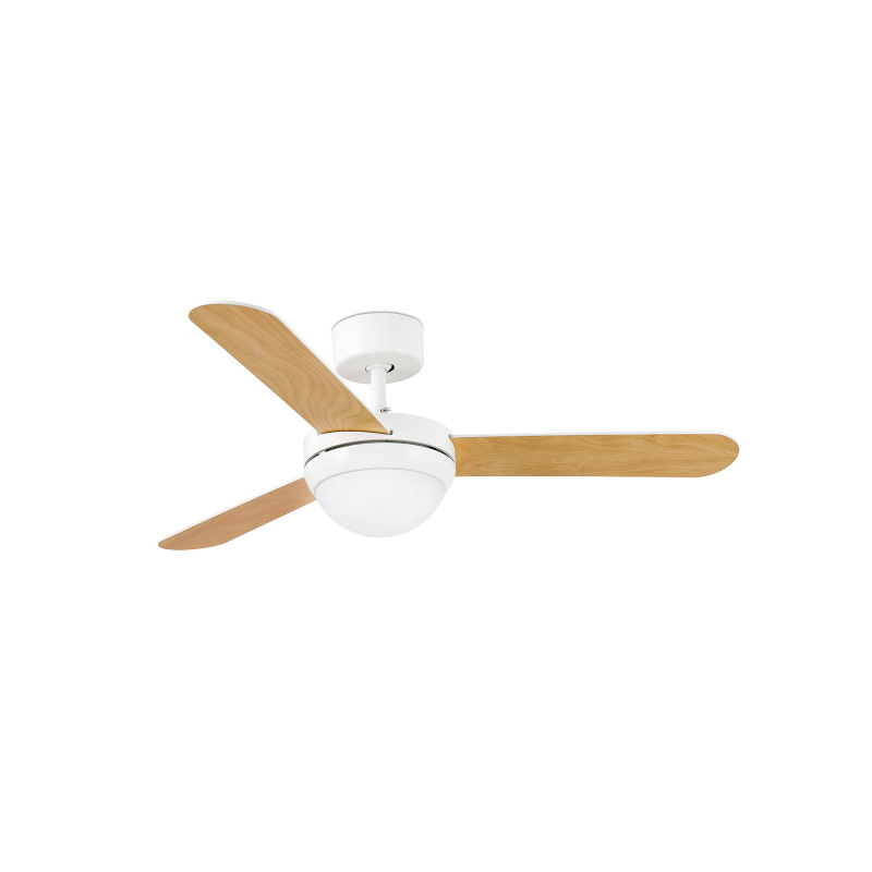 Klasikinio dizaino lubų ventiliatorius su šviestuvu, su moderniu valdymu. Ventiliatorius galimas trijų spalvu baltos (white), pilkos (matt nickel), rudos (dark brown).