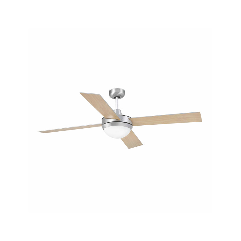 Modernus lubų ventiliatorius su šviestuvu. Tinkmas patalpoms nuo 17.6m2. Motoras pagamintas iš plieno, geležtės iš medžio. Valdymui naudojamas nuotolinio valdymo pultas. Trys reguliuojami greičiai. Apsisukimai per minutę 98/143/188. Elektros sąnaudos 16/28/49W. Turi žiemos / vasaros funkciją.