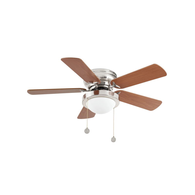 Modernus lubų ventiliatorius tinkamas iki 13m2 patalpoms. Lemputė nepridedama. Motoras pagamintas iš plieno, geležtės iš medžio. Rankinis valdymas. 3 greičiai, eletros sąnaudos 27/34/44, apsisukimai per minutę 151/208/253. Turi vasaros žiemo funkciją.