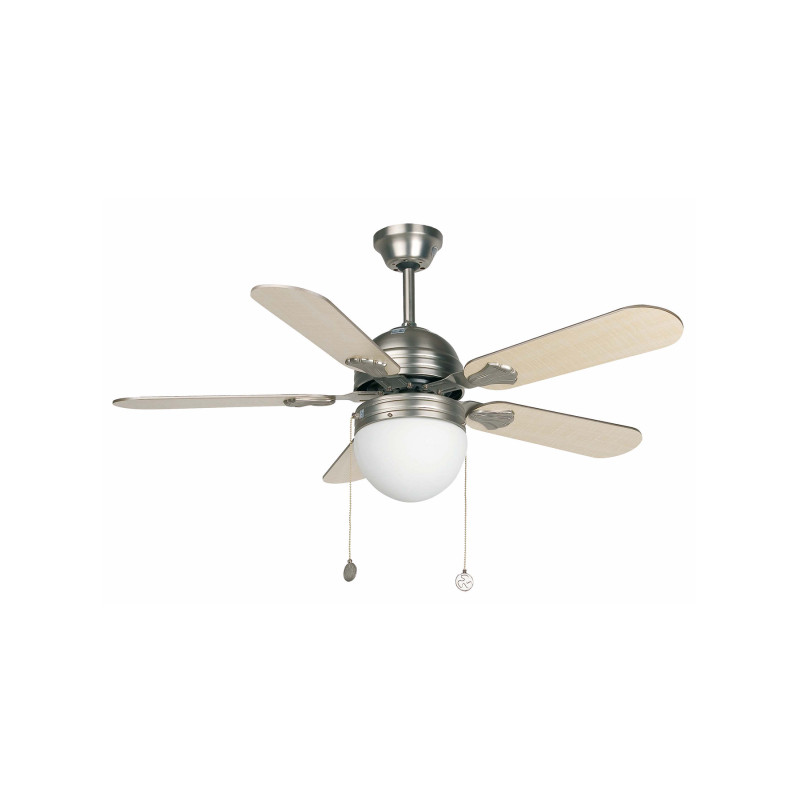 Lubų ventiliatorius su šviestuvu, tinka kambariams iki 13m2. Motoras pagamintas iš plieno, geležtės iš medžio. Rankinis valdymas. Turi tris greičius, apsisukimai per minutę 140/200/250, elektros sąnaudos 27/37/50W. Turi žiemos/vasaros rėžimą.