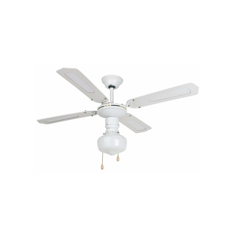 Lubų ventiliatorius su šviestuvu, idealus kambariams iki 13m2. Motoras pagamintas iš plieno, geležtės iš medžio. Rankinis valdymas (pultas neįeiną į komplektą, tačiau galima įsigyti atskirai). Trys reguliuojami greičiai, apsisukimai per minutę 94/162/211, elektros sąnaudos 30/38/50W.