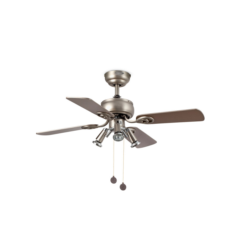 Lubų ventiliatorius su šviestuvu, idealus kambariams iki 13m2. Pridedamos lemputės 3vnt GU10 50W. Motoras pagamintas iš plieno, geležtės iš medžio. Rankinis valdymas (pultas neįeiną į komplektą, tačiau galima įsigyti atskirai). Trys reguliuojami greičiai, apsisukimai per minutę 160/230/270, elektros sąnaudos 29/35/45W.