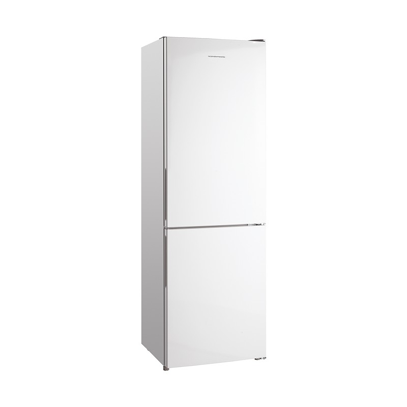Klasikinis baltas šaldytuvas/šaldiklis su integruota rankena ir praktiškomis funkcijomis, atitinkančiomis daugumos namų ūkių poreikius.
