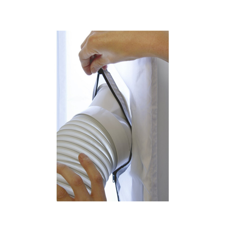 Montuojama ant lango rėmo. Naudojantis užtrauktuku karštas oras nepatenka į patalpą, taip pat apsisaugoma nuo vabzdžių. Tinka visiems langams, kurių maksimalus perimetras iki 400 cm.