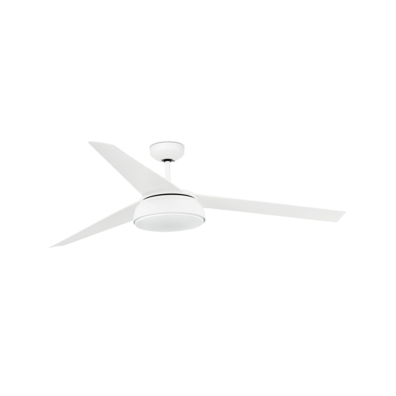 Modern ceiling fan, including a LED light kit, ideal for rooms over 17.6m2. The light source of this ceiling fan is SMD LED 25W dimmable warm light, integrated. DC Motor built in steel, ABS blades finished in white, and opal glass diffuser. Operated on remote control (included). VULCANO offers 6 adjustable speeds with a consumption of 6-9-13-18-20-27W and 80-106-127-147-161-181 revolutions per minute depending on speed. It has summer-winter function.