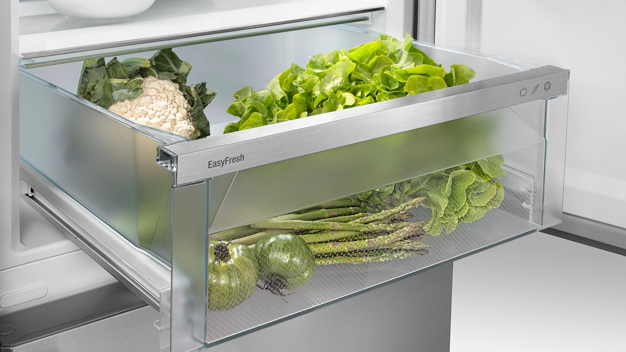 „EasyFresh“ stalčius užtikrina, kad produktai bus išlaikomi švieži jūsų namuose kaip prekybos vietoje. Nesvarbu, ar tai supakuoti vaisiai, ar daržovės: čia viskas laikoma optimaliomis sąlygomis. Dėl sandaraus dangčio maisto produktai padidina oro drėgmę stalčiuje. Tokiu būdu maisto produktai ilgai išlieka švieži.